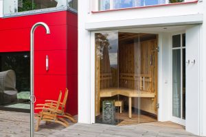 Der Bauherr kam mit dem Wunsch auf uns zu, an sein bestehendes Wohnhaus in Fulda einen eingeschossigen Anbau mit Dachterrasse anzugliedern. Unser Entwurf sah vor, dass der Anbau mit Hilfe eines verglasten Durchganges vom Haupthaus zugänglich wird und sich vom Wohnhaus gestalterisch abhebt. Die Fassade des Anbaus haben wir mit einer hölzernen Leistenschalung verkleidet. Durch die Leistenschalung fügt sich das Gebäude in das mit altem Baumbestand gesäumte Grundstück harmonisch ein.
