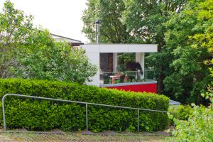 Den Anbau haben wir in Holzrahmenbauweise entworfen, das Flachdach der Terrassenfläche wurde mit einem Steinbelag versehen. Die Außenanlage des Wohnhauses ist aufgewertet durch eine Terrasse mit Holzbelag. Alle weiteren Flächen haben wir naturnah gestalten und mit einheimischen Baum- und Pflanzenarten anlegen lassen.