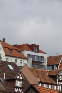 In der Entwurfsphase haben wir uns mit folgenden Fragen beschäftigt: Wie soll das neue Gebäude auf dem Markplatz aussehen? Es sollte nicht historisierend sein, sich in das Marktplatz-Ensemble einfügen aber doch einen eigenständigen Charakter haben. Die Kunst war es, die vorhanden Baustile und Farben vom Marktplatz zu vereinen und neu zu interpretieren. Wir haben vor der Bauzeit viele anregende Gespräche mit dem Denkmalschutz geführt, was zu dem heutigen Ergebnis geführt hat.